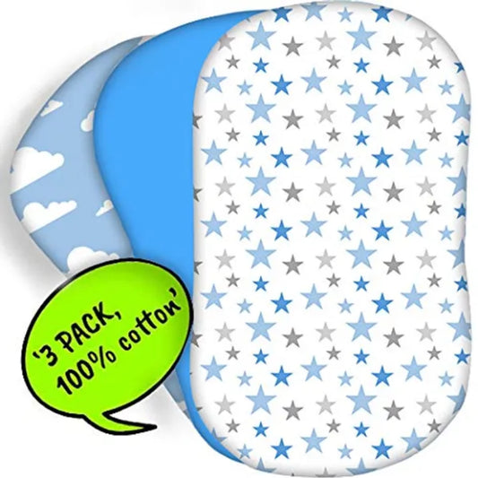 3-Pack Moses Basket Sheets (Blue)